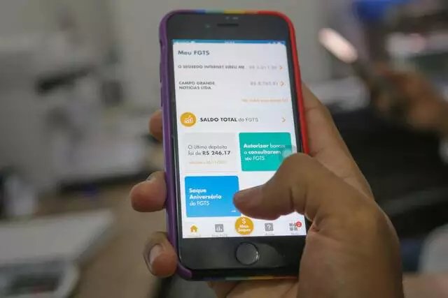 Cidadã acessa o aplicativo do FGTS no aparelho celular. (Foto: Arquivo/Paulo Francis)