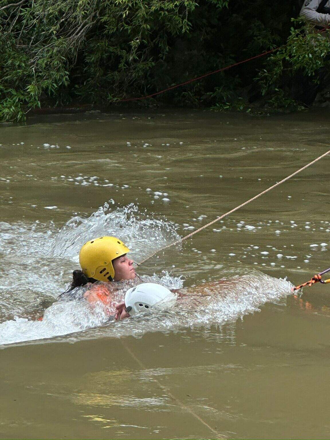 Uma equipe formada por quatro militares, um sargento, um cabo e dois soldados, saiu de Bonito com equipamentos de salvamento em altura. No local, foi necessário montar um sistema de cordas e mosquetões para permitir a travessia segura, já que não havia outra alternativa a não ser cruzar o curso d’água.