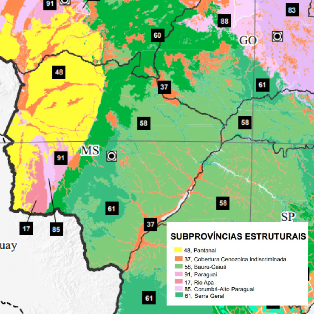 Outro ponto destacado pelo levantamento é que essa diversidade não ocorre por acaso. O mapa também relaciona os tipos de vegetação às chamadas províncias estruturais, que representam a base geológica do território. Mato Grosso do Sul reúne diferentes dessas estruturas, como áreas associadas ao Pantanal, à Bacia do Paraná e às formações mais antigas ao sul do Estado.