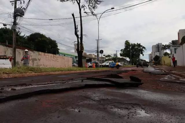 A Prefeitura de Campo Grande inicia nesta quarta-feira (7) uma ação emergencial para recuperar o asfalto que cedeu durante a forte chuva registrada na tarde de terça-feira (6) na Avenida Rachid Neder.